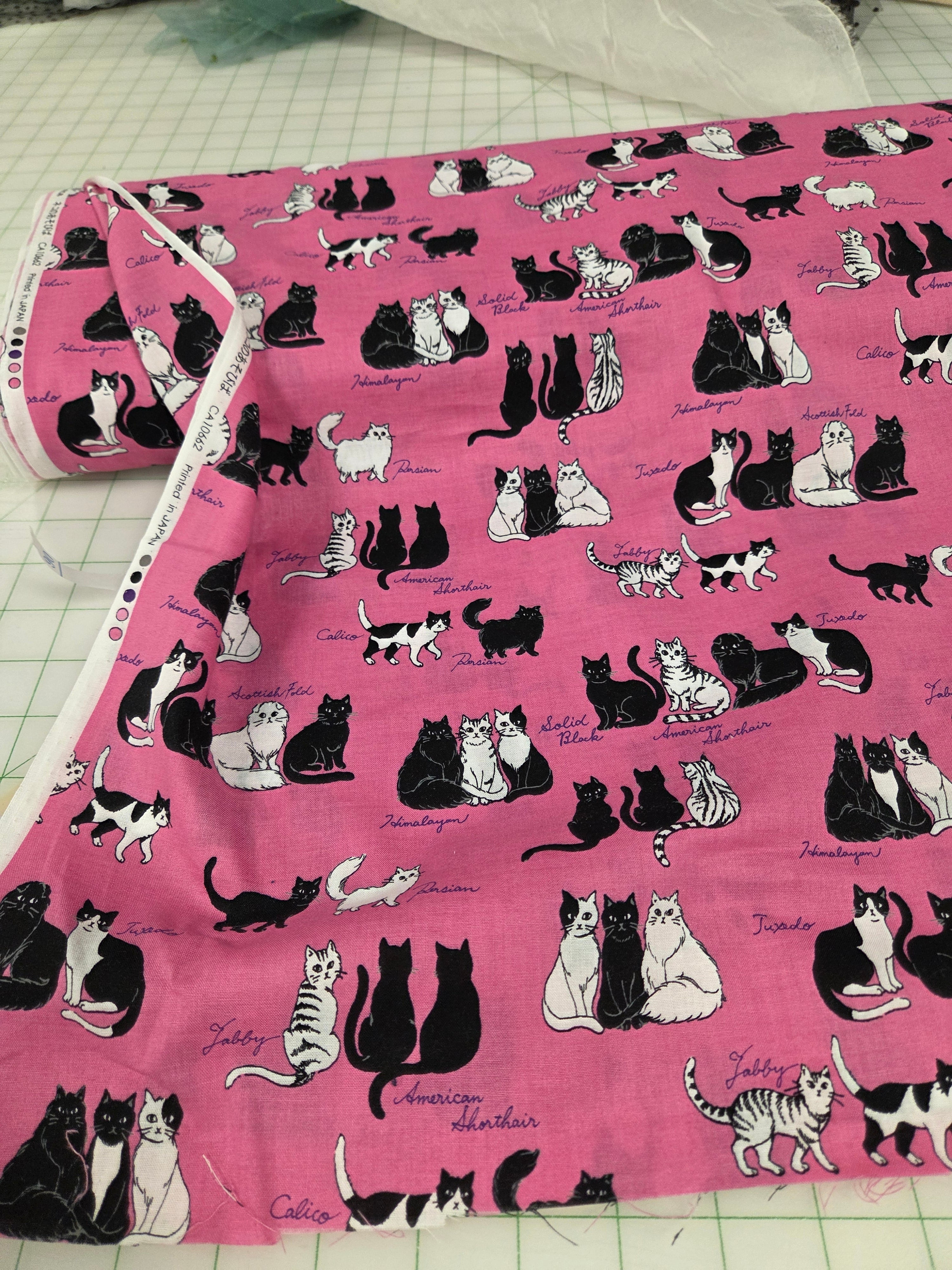 Japan Import: Pink All Breeds Cotton Cats Woven- by the yard