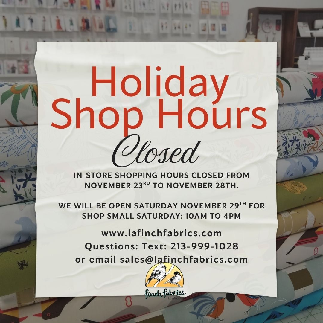 Re-opening for SHOP SMALL SATURDAY NOVEMBER 29th