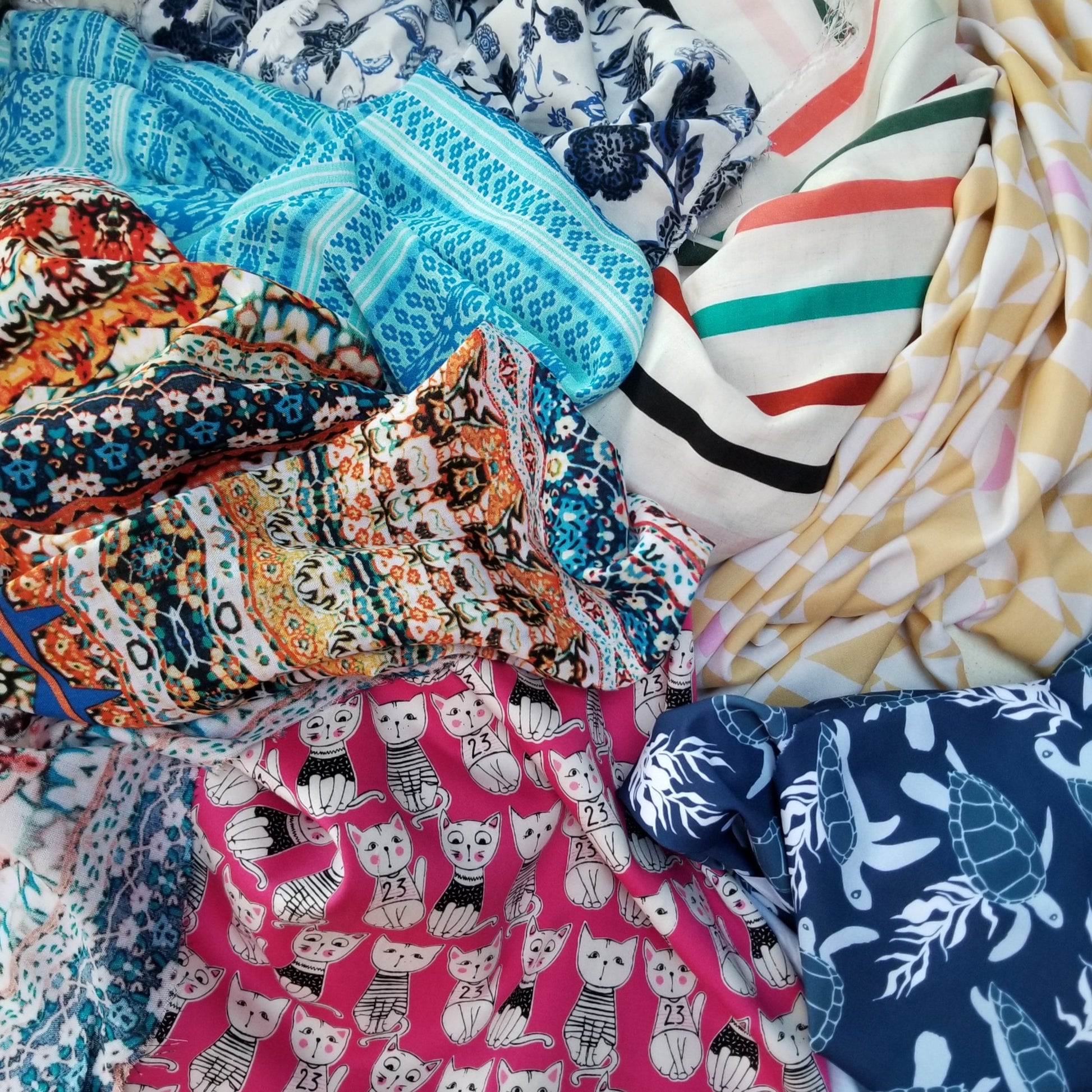Description: A gorgeous 120gsm rayon challis woven. A bohemian inspired print. A lightweight sheer woven. Drapey and flowy ideal for tanks, blouses, skirts, wrap dresses, Recommend lining as the fabric is an ivory ground.