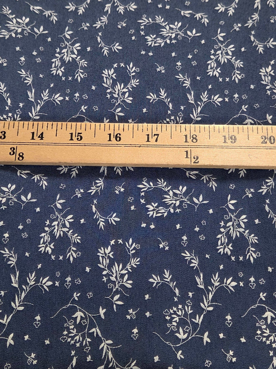 Cotton Blend Printed Vines Floral Dark Chambray Shirting Woven- by the yard
