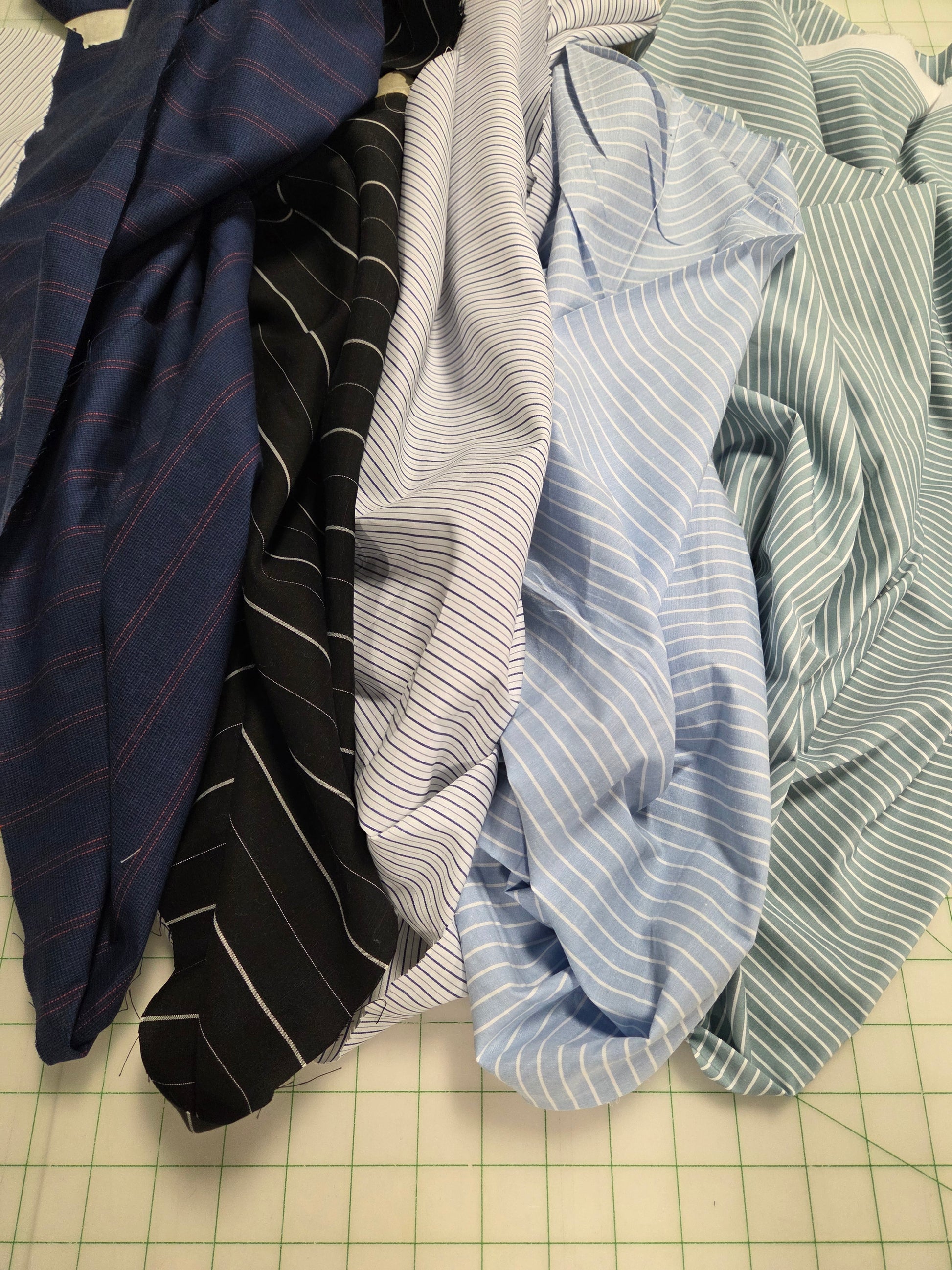 Description: A vertical small stripe cotton spandex shirting poplin. Vertical stripe for shirts, dresses, longsleeves, tanks, dresses, blouses. 25% two way stretch
