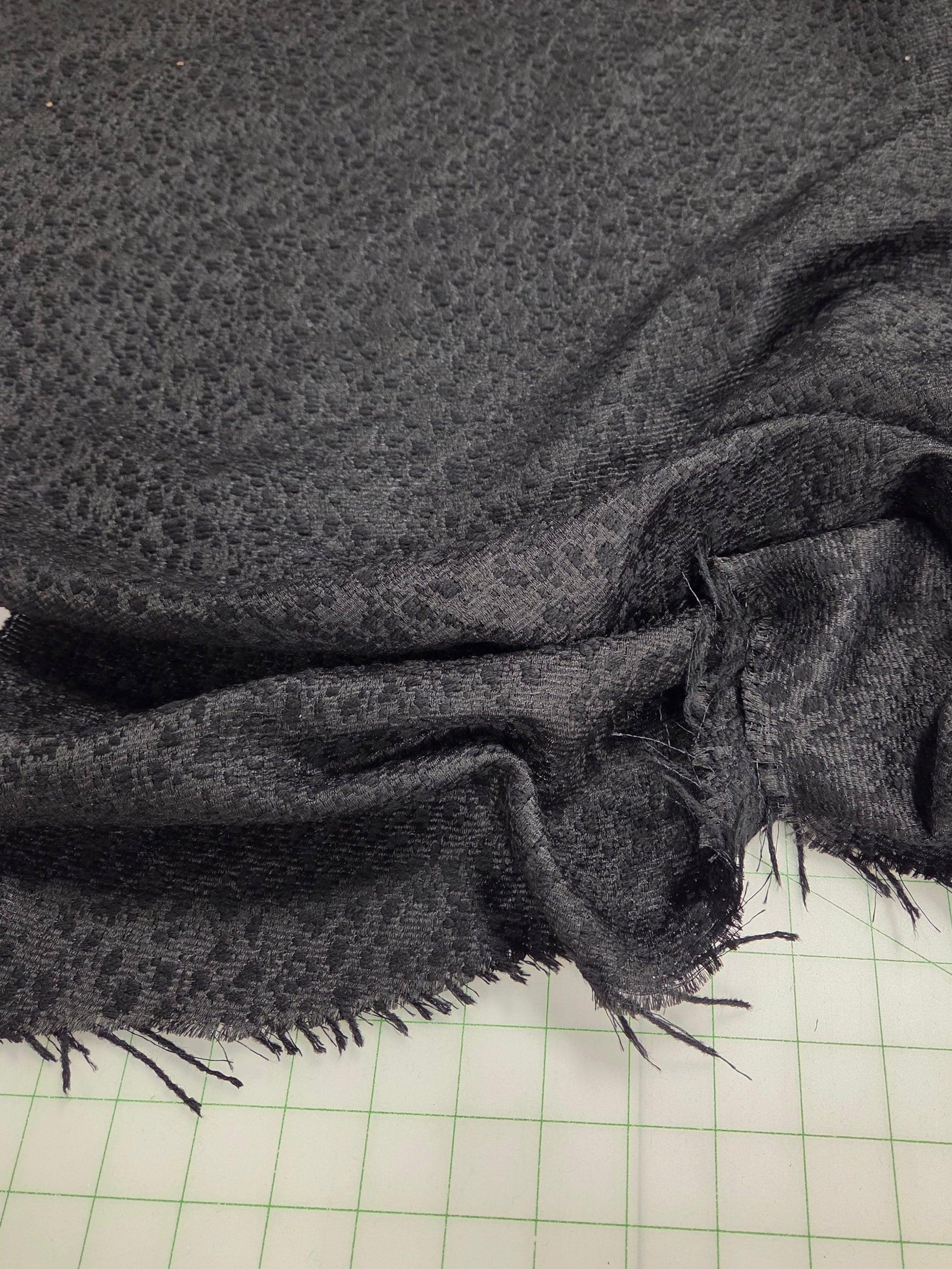 Description: Jacquard textured coating woven. Designer Deadstock, non-reorderable. Designer Deadstock Italian Wool Blend Jacquard Textured Black Coating Woven- by the yard