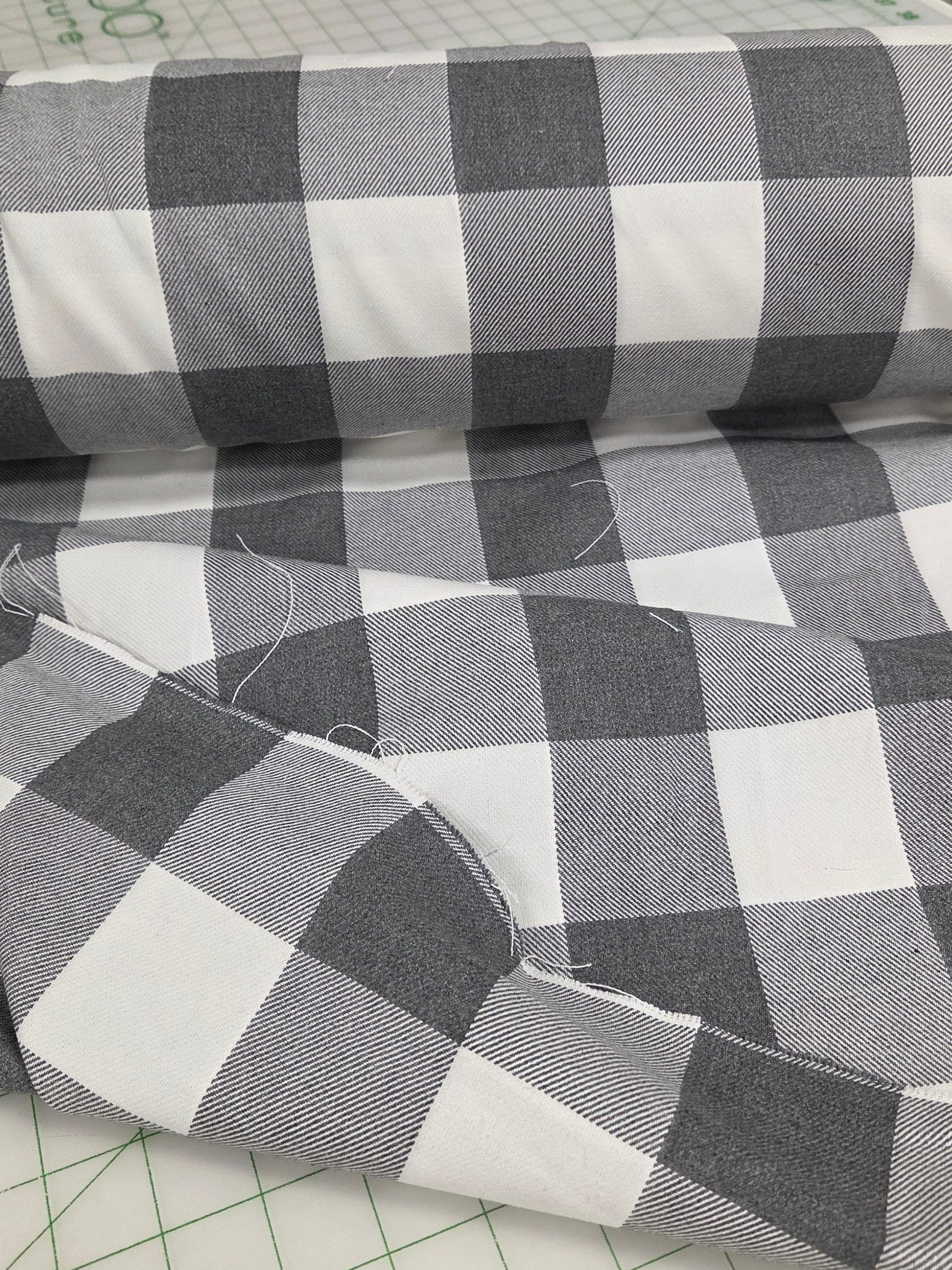 Designer Deadstock Shirting Yarn Dyed Buffalo Check Heather Gray and White Cotton Woven- by the yard