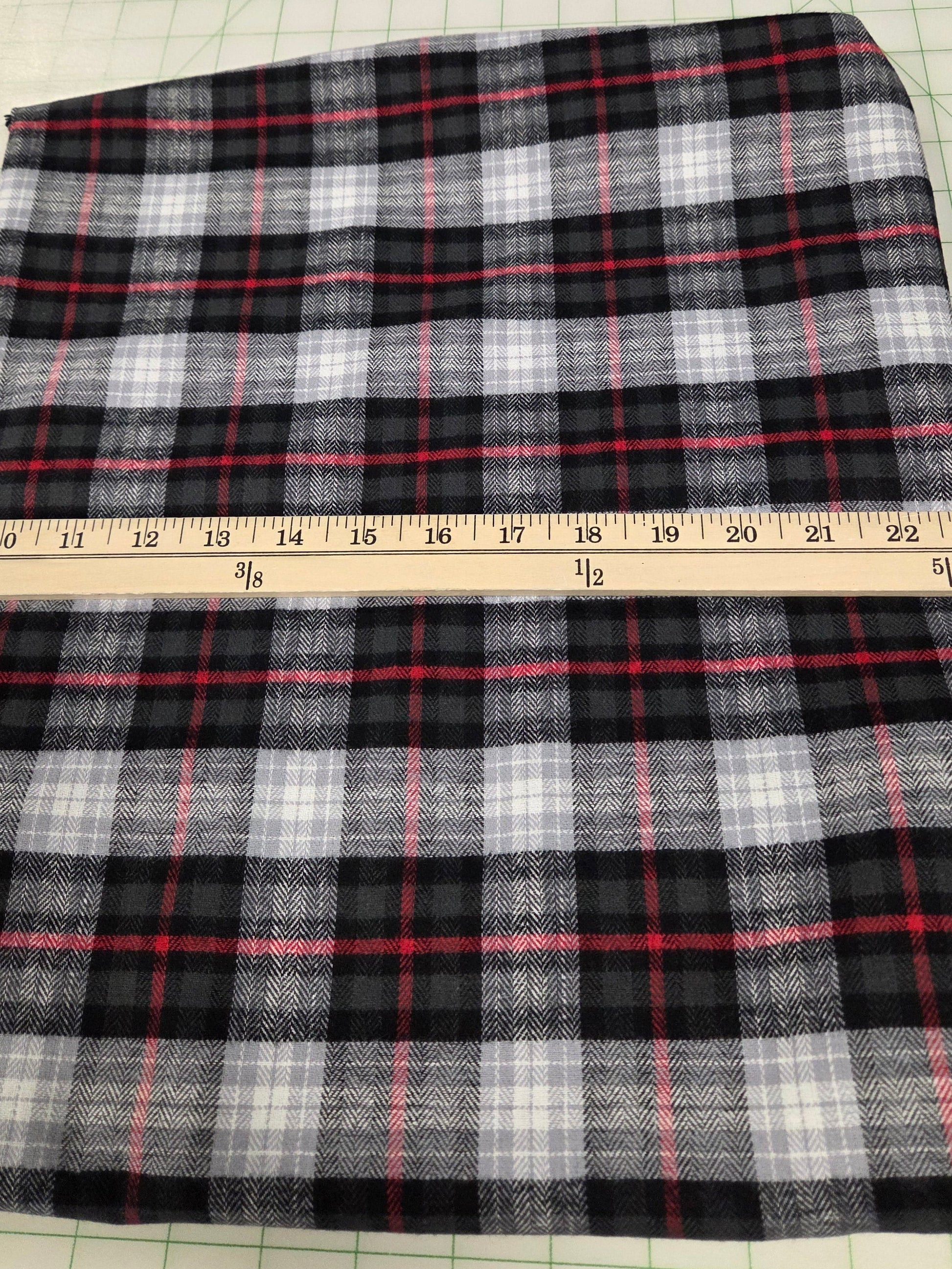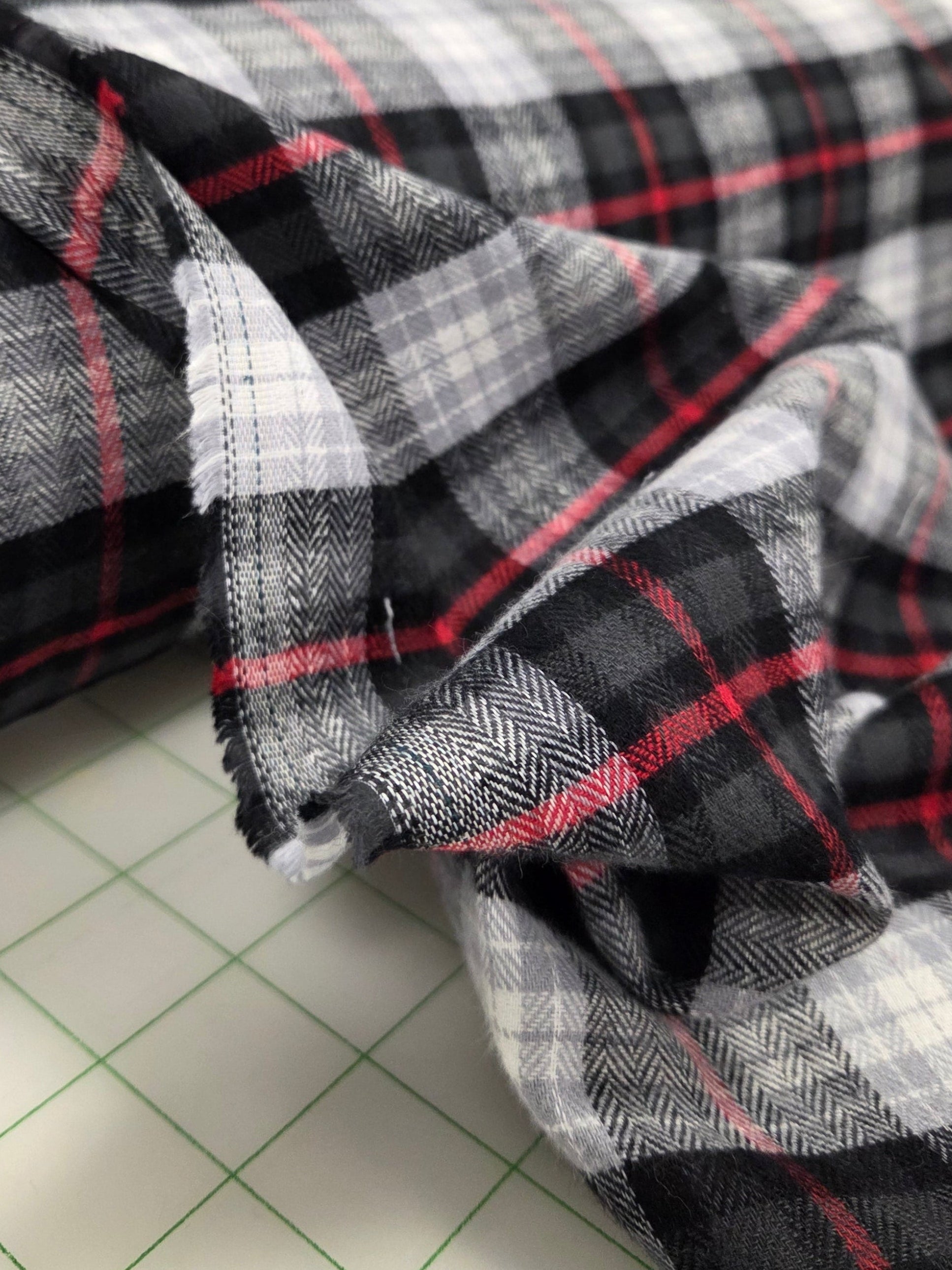 Designer Deadstock Shirting Yarn Dyed Herringbone Weave Black and Red Flannel Cotton Woven- by the yard