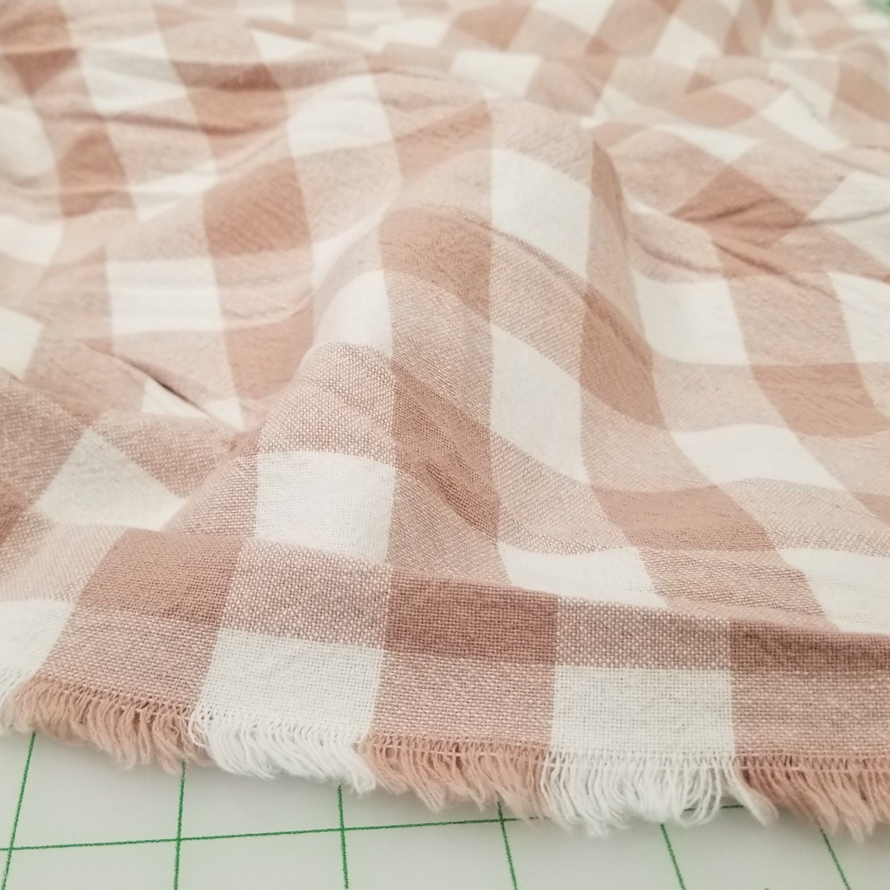 End of Bolt: 2 yards of Organic Cotton Checkered Yarn Dyed Rose Mauve Large Gingham 6.34oz Textured Woven- remnant