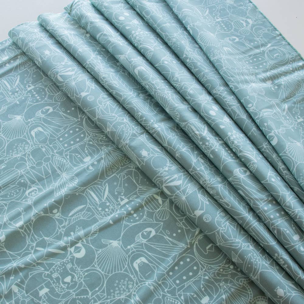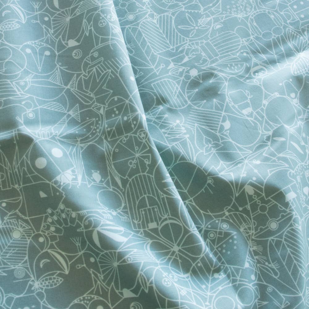 Birch Fabrics: Organic Cotton Poplin 115 GSM End Papers Seafoam by Charley Harper- by the half yard