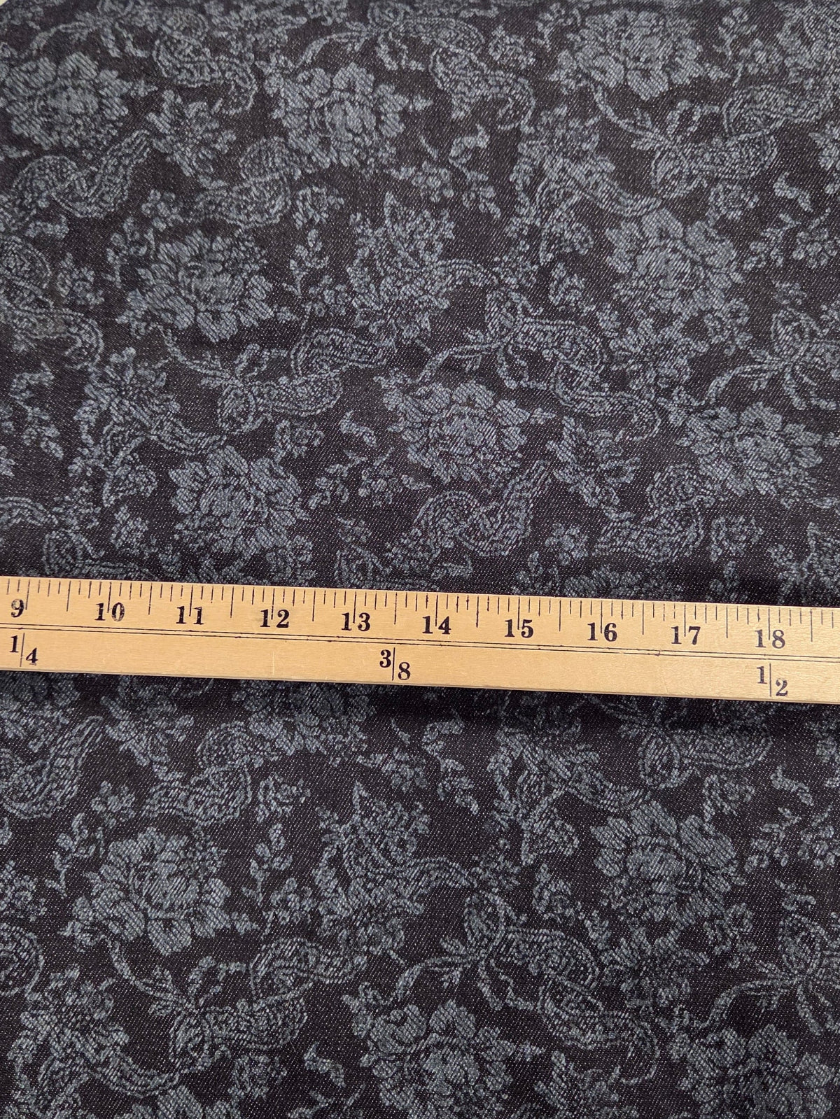 Italian Designer Deadstock Paisley Vines Printed Dark Indigo Denim Woven- by the yard