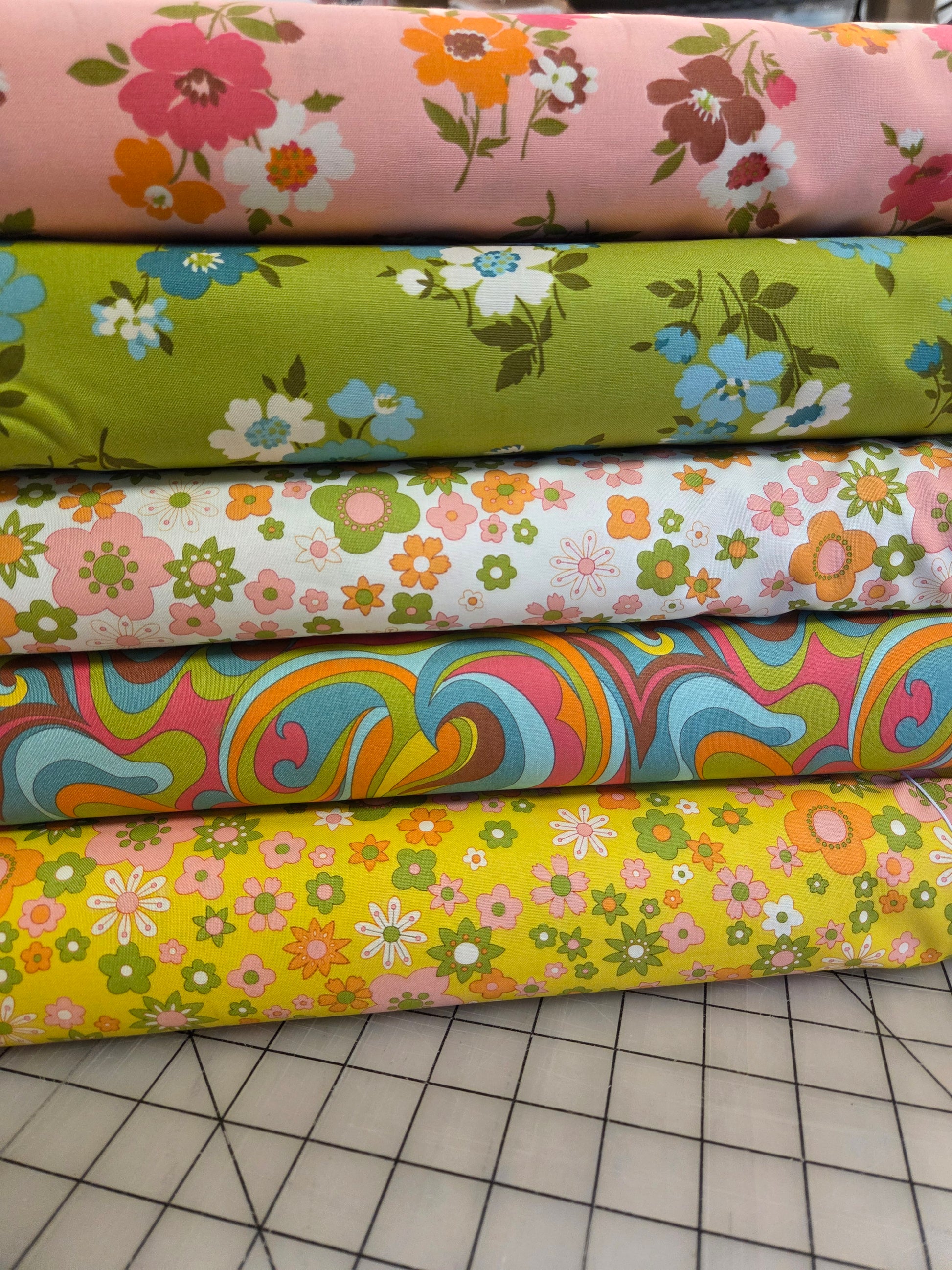 Description: Quilting Cotton Weight Woven. Soft cotton with amazing colors throughout the print. Perfect for bagmaking, quilting, home decor, and garments such as button-ups, skirts, pajamas, dresses.