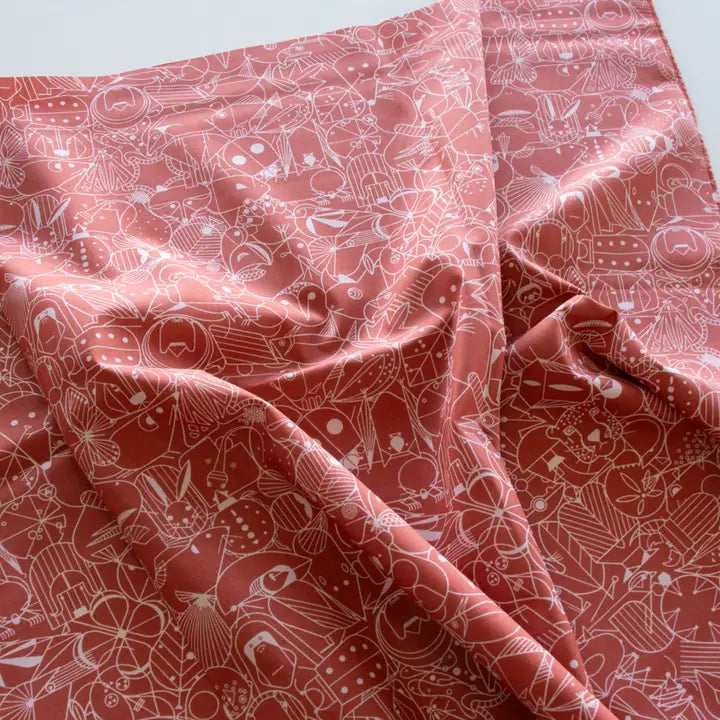 Premium Organic Cotton End Papers Burnt Brick Red Poplin by Charley Harper for Birch Fabrics- by the half yard