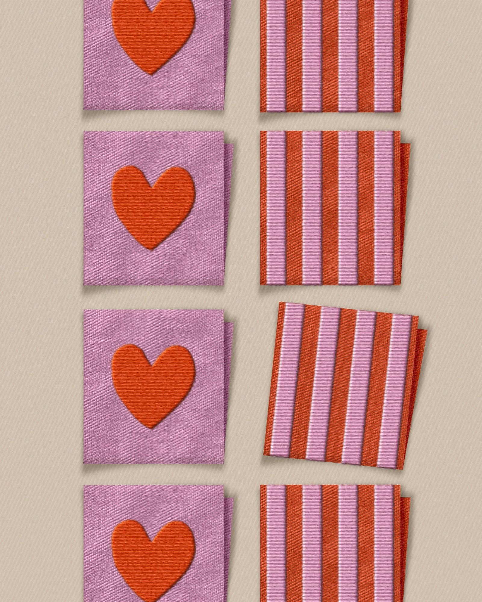 Sewing Labels:Red Heart and Stripe Square Garment Labels by Matchy Matchy Sewing Club: Set of 8-1 pack