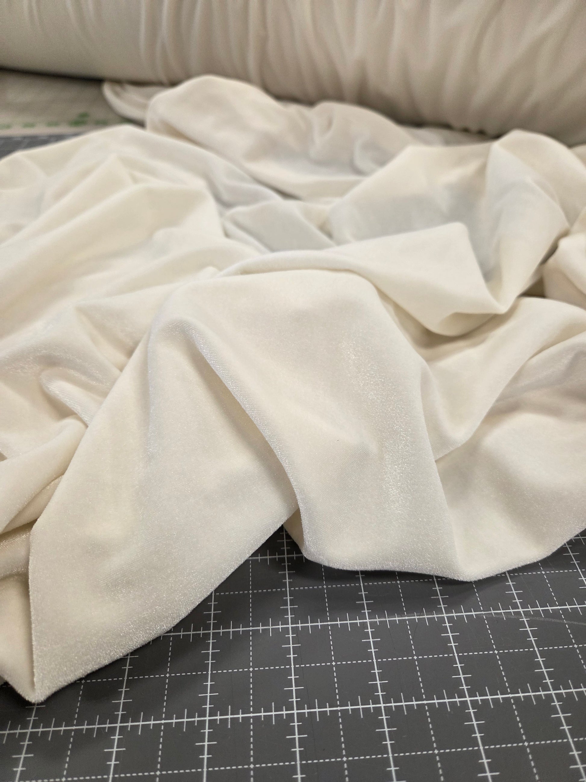 Special Occasion Designer Deadstock Ivory Stretch Velvet Knit Solid - by the yard