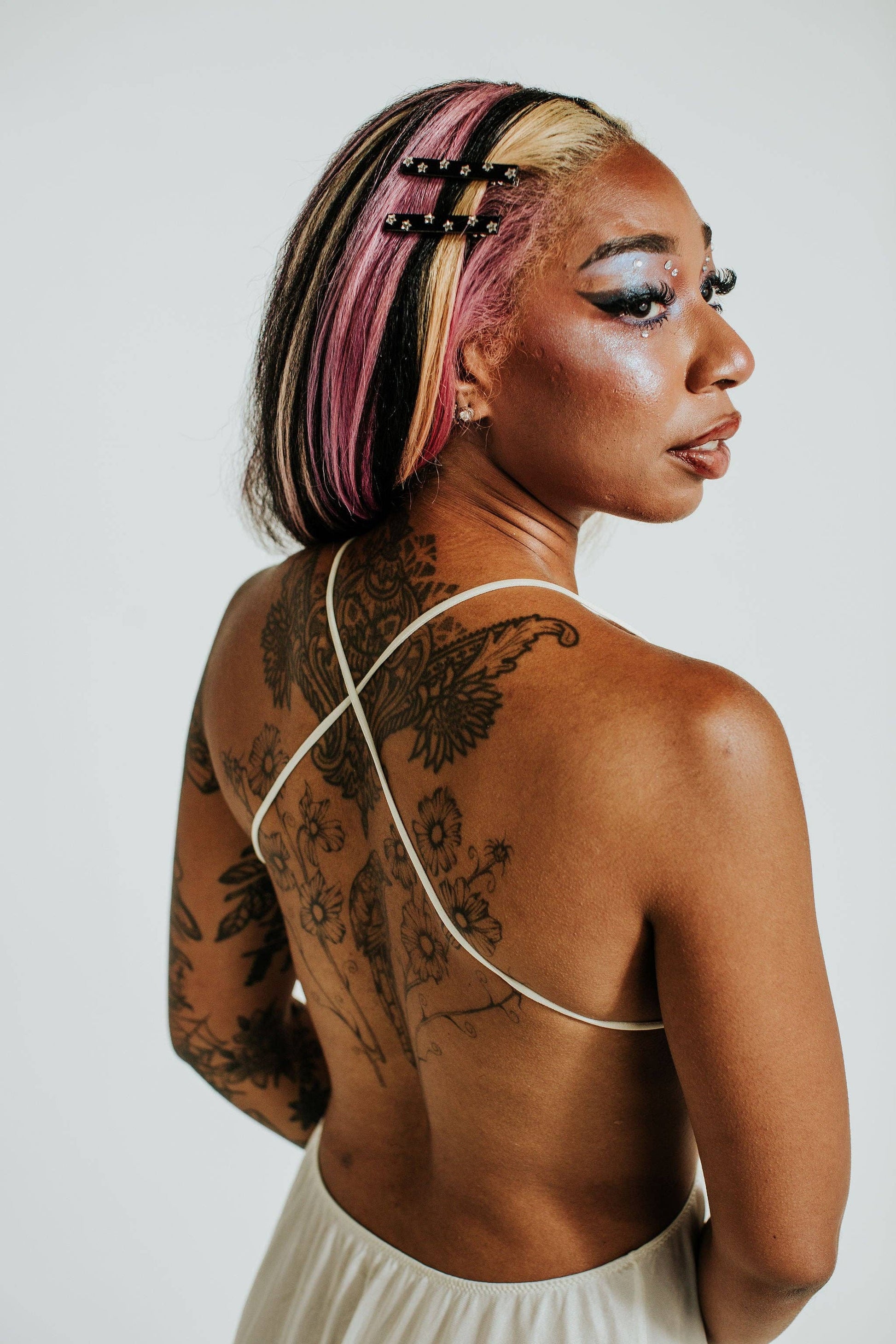A little sparkle, sparkle. The Stardust Clips are a set of long, thin hair clips with raised silver star details. Backed on alligator clips with super strong hold, the Stardust Clips are perfect for holding back any hair type. Available in black- 2.5 inches long. Designed in Austin, Texas and responsibly made in China, the Stardust Clips are hand assembled from plant-based cellulose acetate. Due to the nature of the materials and process, each piece is unique and small variations will occur.