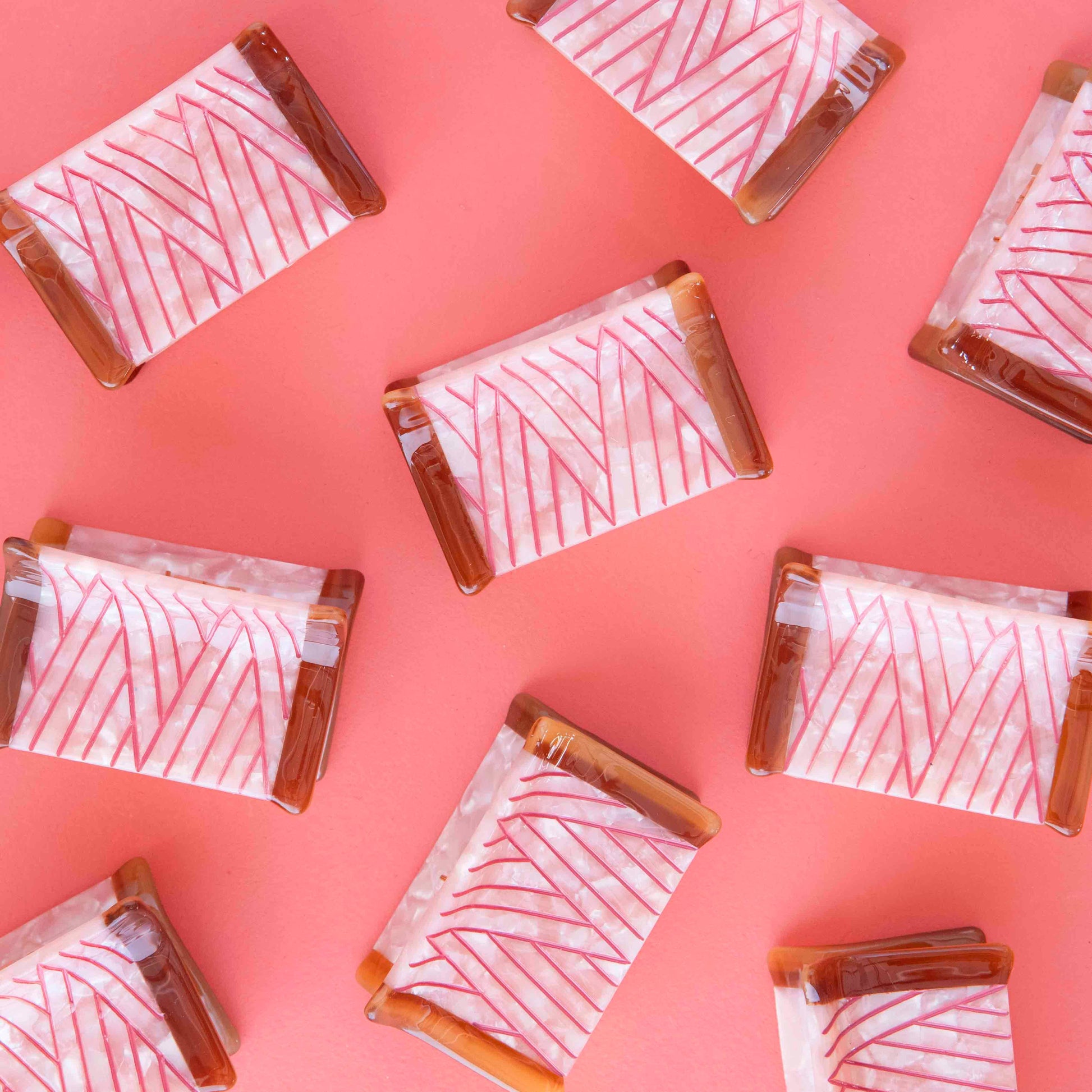 Celebrate your passion for sewing with the Thread Spool Hair Claw Clip. Crafted from eco-friendly plant-based acetate, this small, playful clip showcases pink iridescent thread and embossed lines that add charming detail and texture. Perfect for keeping your hair tidy while highlighting your love for stitching. And like all our hair accessories, it's made from plant-based cellulose acetate, meaning it's biodegradable and better for the environment.